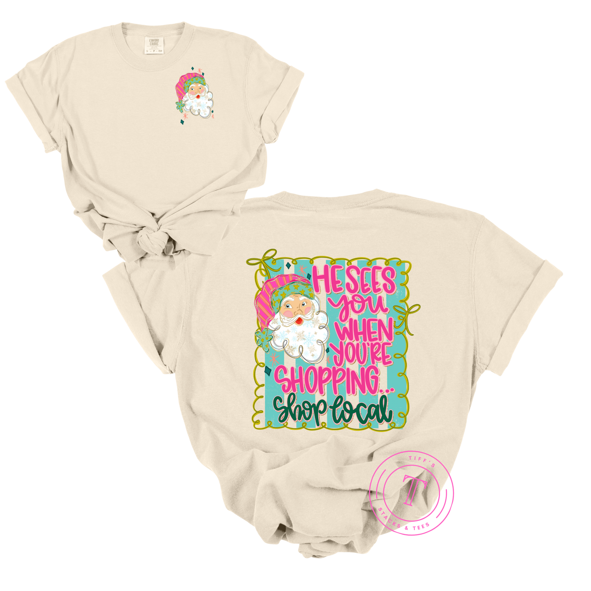 He's Sees You When You're Shopping...Shop Local Front & Back